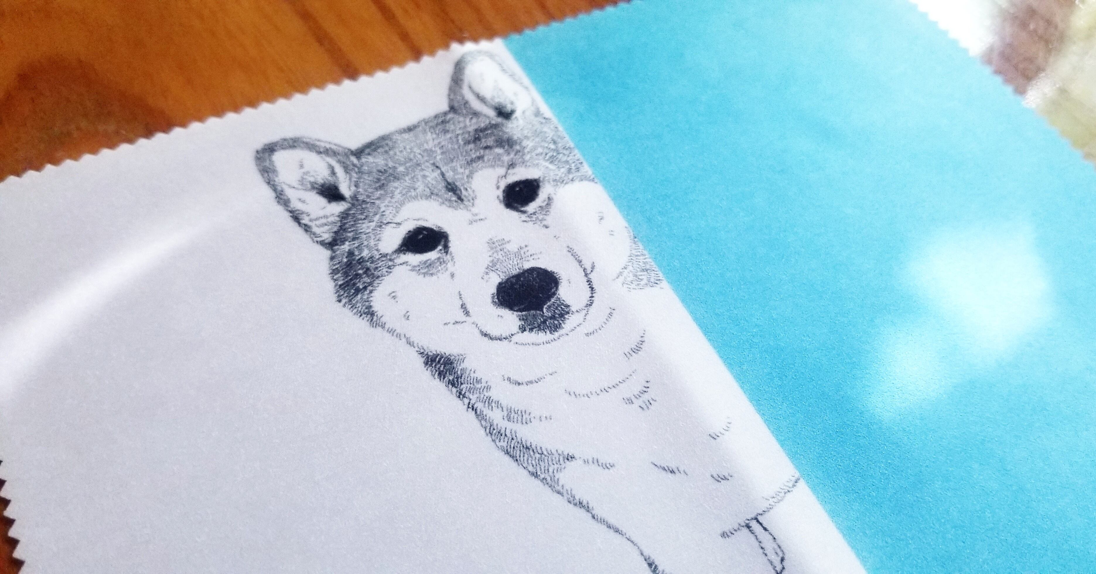 大きめのサイズで光沢があるタイプのメガネクロスです。