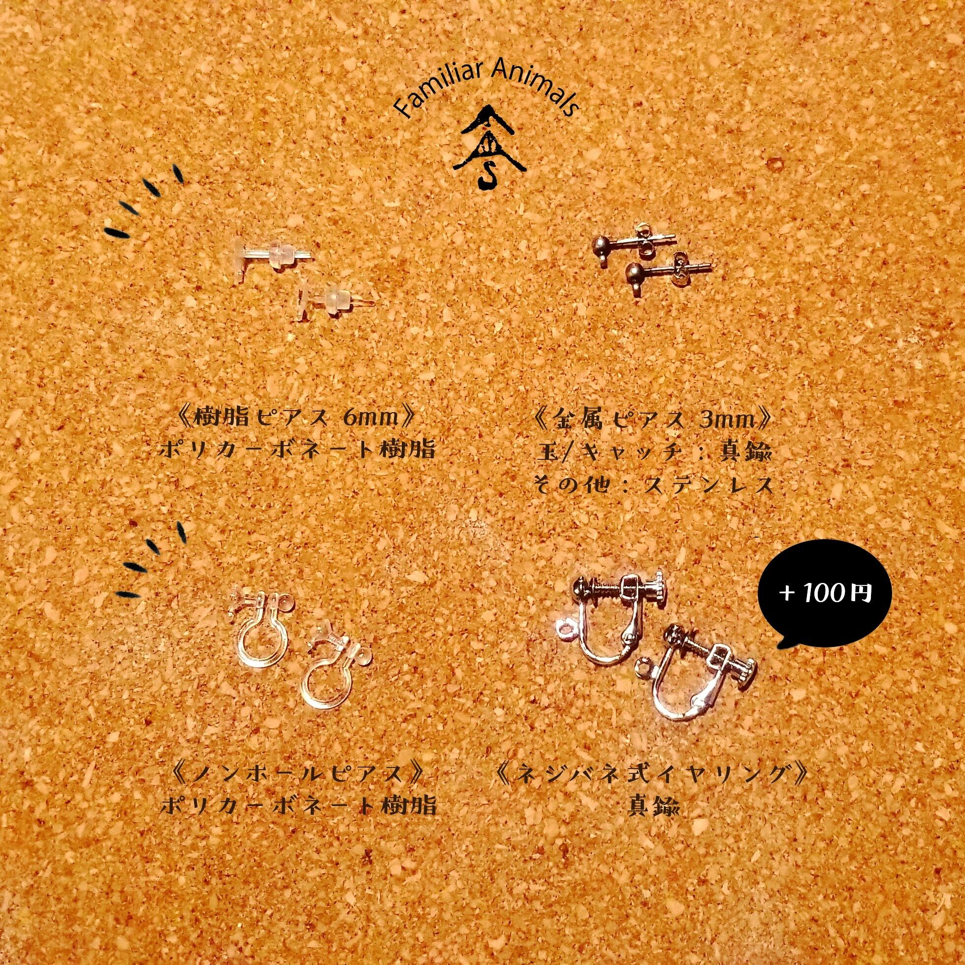 ネジバネ式イヤリング(金属)をご希望の方は表示価格+100円で変更いただけます。